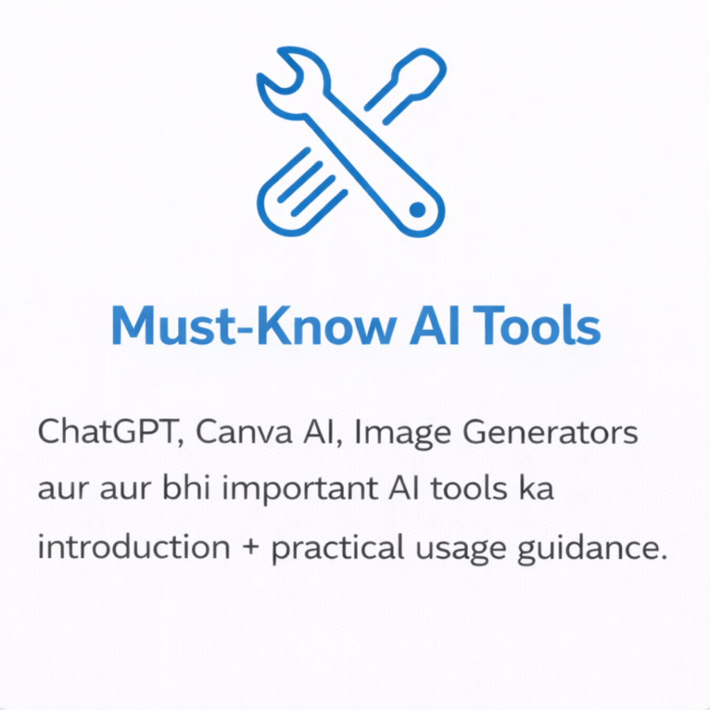Tools That Actually Matter ChatGPT, Canva AI aur important beginner tools ka guided introduction.